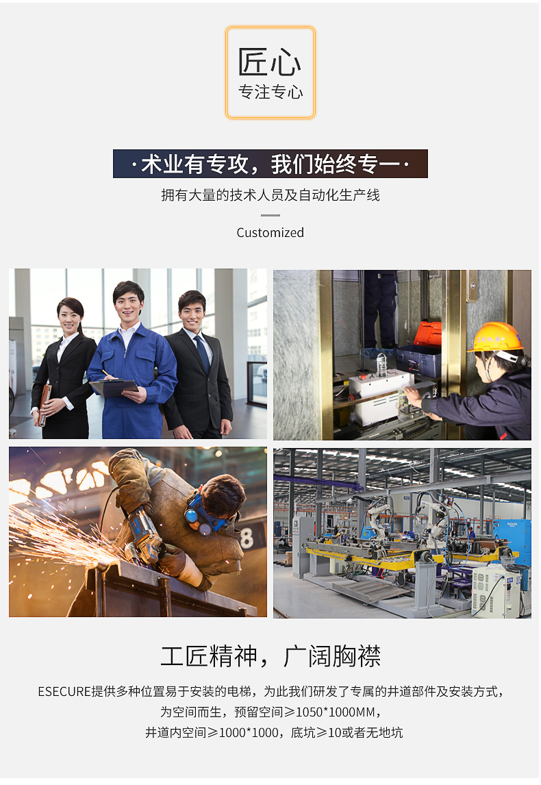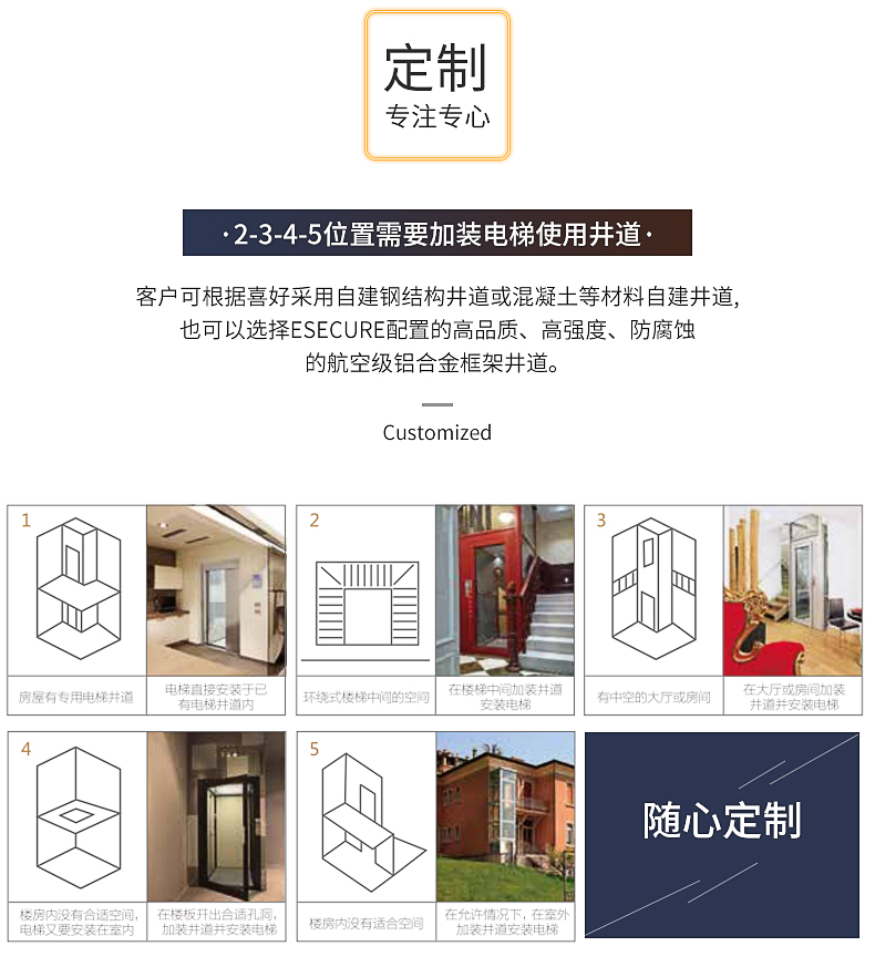 含金色鋁合金框架井道4層電梯上海地區標準配置價格:
